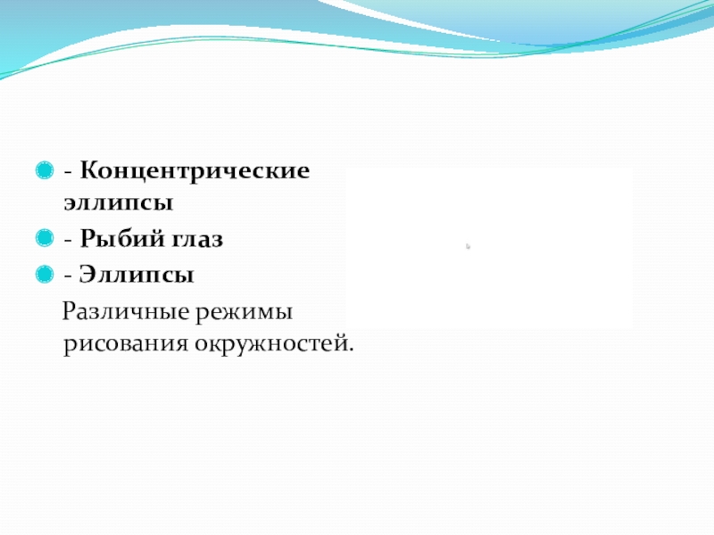 - Концентрические эллипсы- Рыбий глаз- Эллипсы  Различные режимы рисования окружностей.