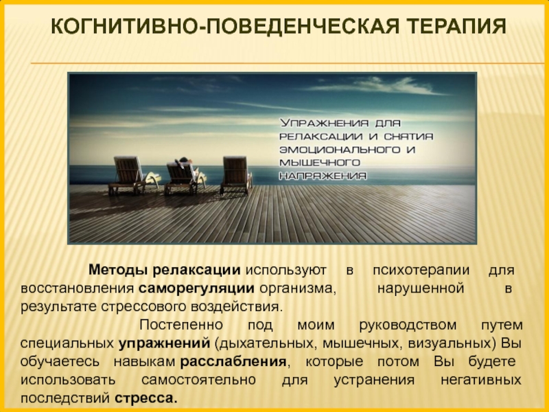 Методы релаксации используют в психотерапии для восстановления саморегуляции организма, нарушенной в