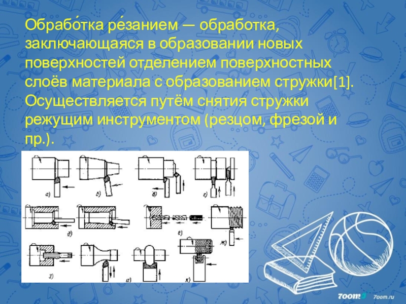 Слайд 16Обрабо́тка ре́занием — обработка, заключающаяся в образовании новых поверхностей отделением поверхностных