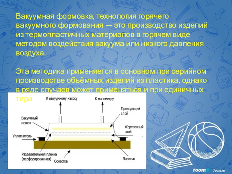 Слайд 13Вакуумная формовка, технология горячего вакуумного формования — это производство изделий из