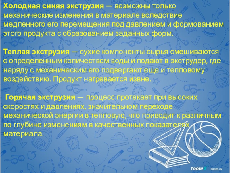 Горячая экструзия — процесс протекает при высоких скоростях и давлениях, значительном переходе механической энергии в тепловую, что приводит к различным по глубине изменениям в качественных показателях материала.