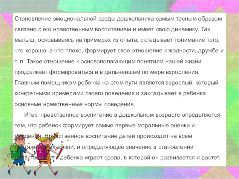 Слайд 5Становление эмоциональной среды дошкольника самым тесным образом связано с его нравственным