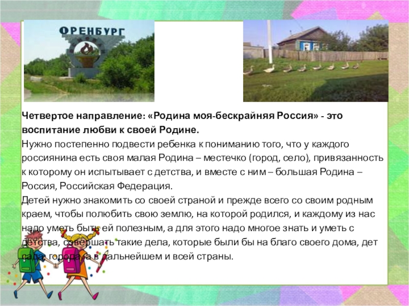 Четвертое направление: «Родина моя-бескрайняя Россия» - это воспитание любви к своей