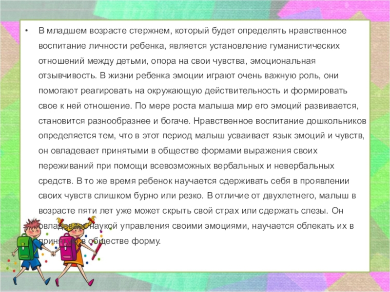 Слайд 4В младшем возрасте стержнем, который будет определять нравственное воспитание личности ребенка,