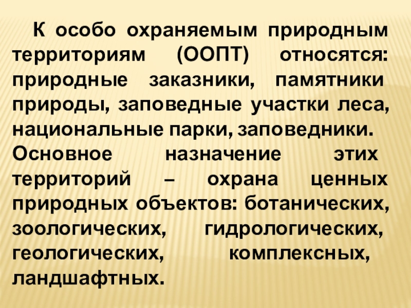 Слайд 2 К особо охраняемым природным территориям (ООПТ) относятся: природные заказники, памятники природы,