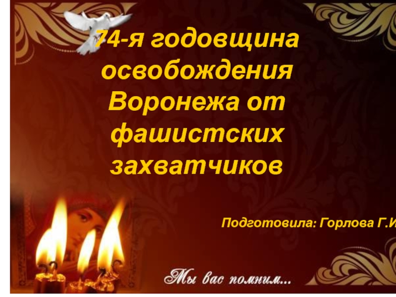 74-я годовщина освобождения Воронежа от фашистских захватчиков  Подготовила: Горлова Г.И.