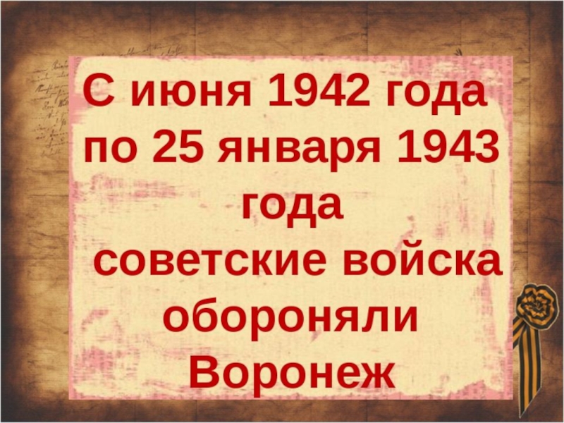 Слайд 174-я годовщина освобождения Воронежа от фашистских захватчиков