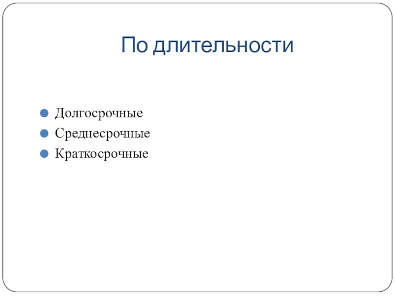 По длительностиДолгосрочныеСреднесрочные Краткосрочные