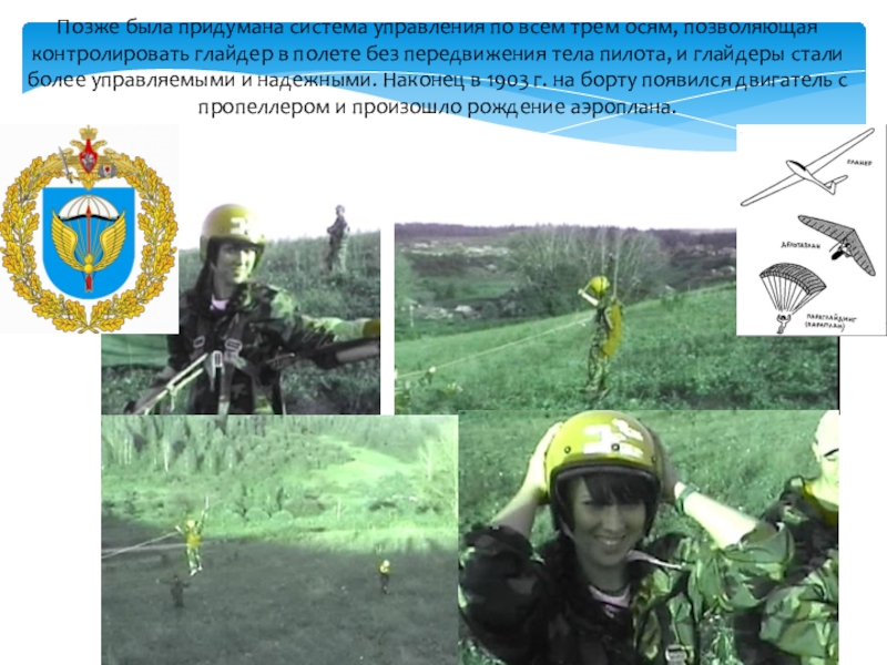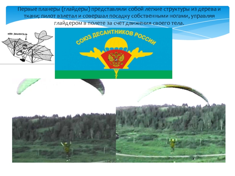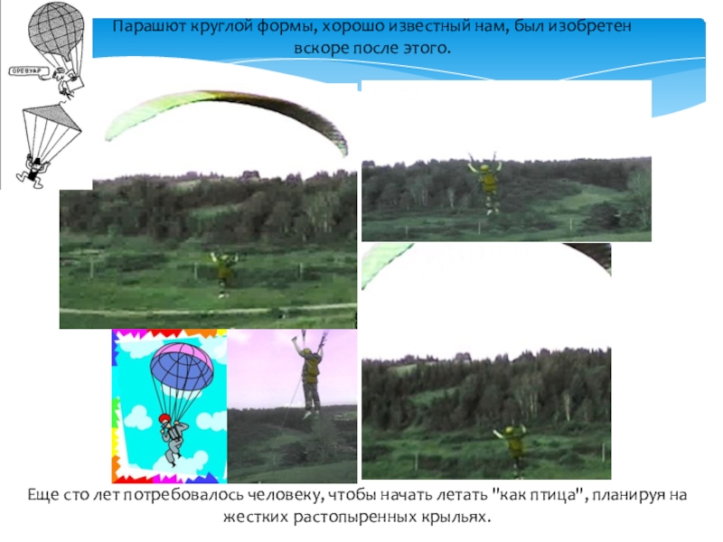 Еще сто лет потребовалось человеку, чтобы начать летать "как птица", планируя на жестких растопыренных крыльях.