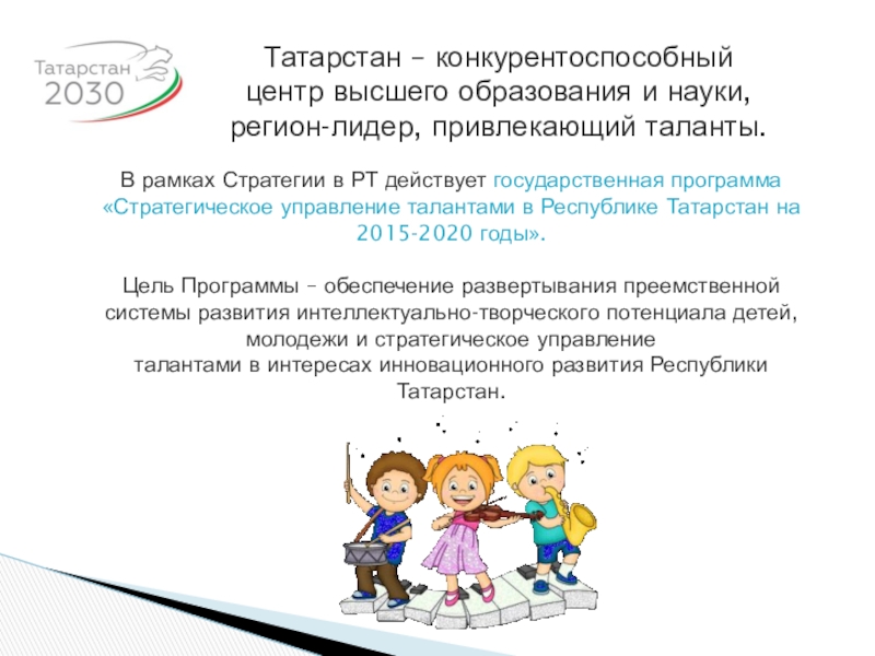 В рамках Стратегии в РТ действует государственная программа «Стратегическое управление талантами в Республике Татарстан на 2015-2020 годы».