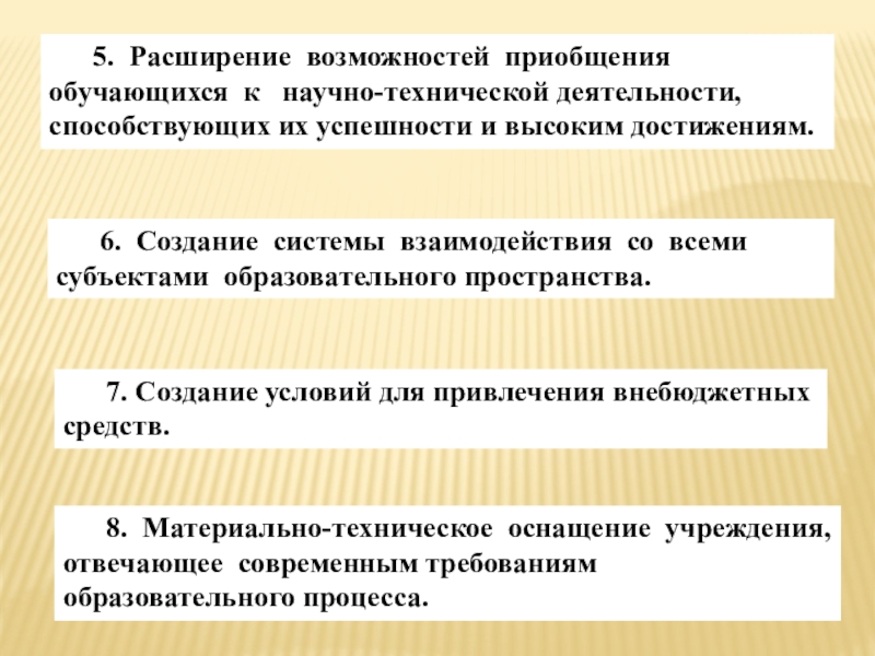 8. Материально-техническое оснащение учреждения, отвечающее современным требованиям образовательного процесса.