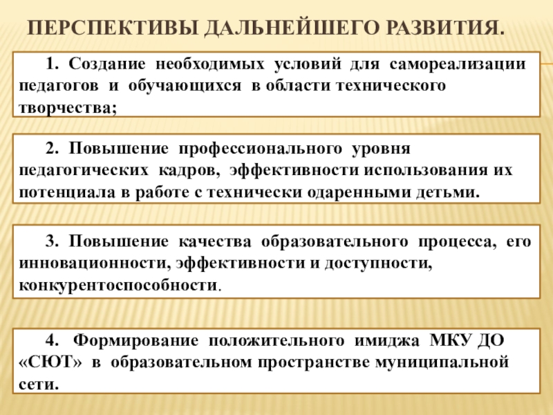 4. Формирование положительного имиджа МКУ ДО «СЮТ» в образовательном пространстве муниципальной сети.