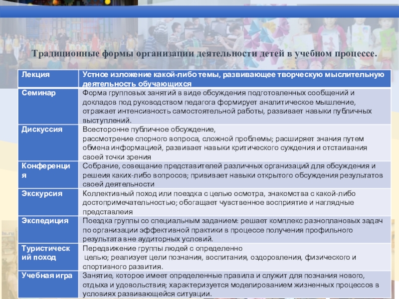 Слайд 27Традиционные формы организации деятельности детей в учебном процессе.