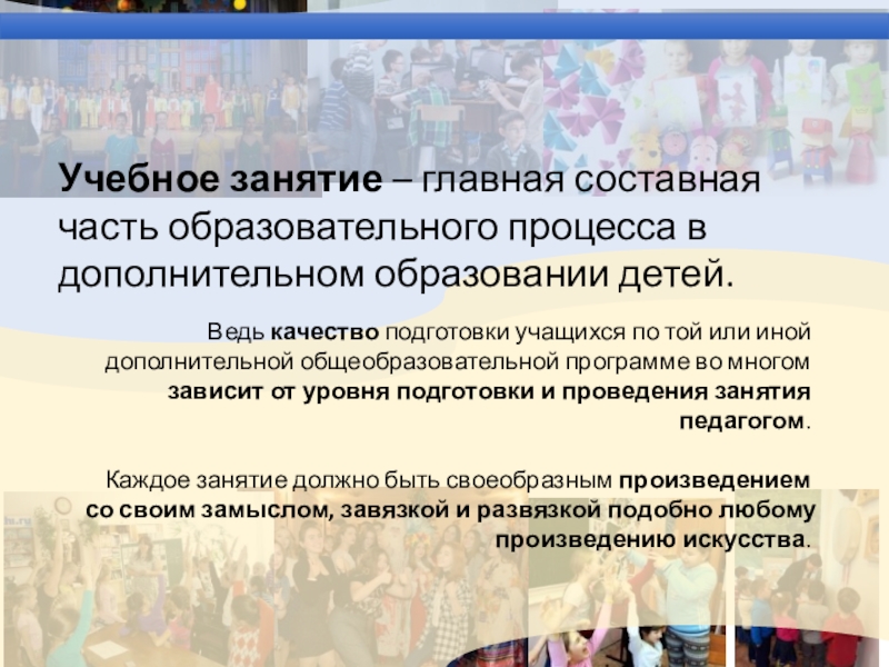 Слайд 10Учебное занятие – главная составная часть образовательного процесса в дополнительном образовании