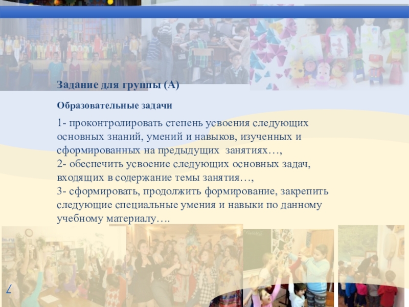 2- обеспечить усвоение следующих основных задач, входящих в содержание темы занятия…,