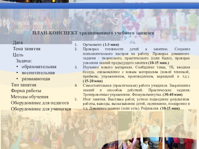 Слайд 38ПЛАН-КОНСПЕКТ традиционного учебного занятия