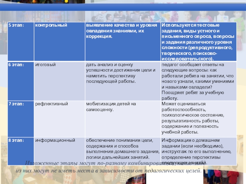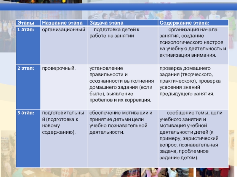любое учебное занятие имеет определенную структуру, т.е. состоит из отдельных взаимосвязанных этапов;