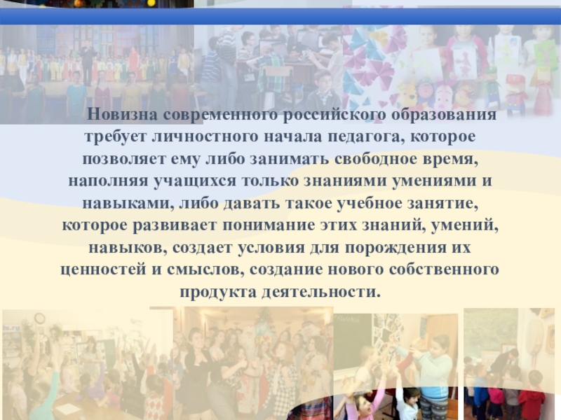 Слайд 45Новизна современного российского образования требует личностного начала педагога, которое позволяет ему