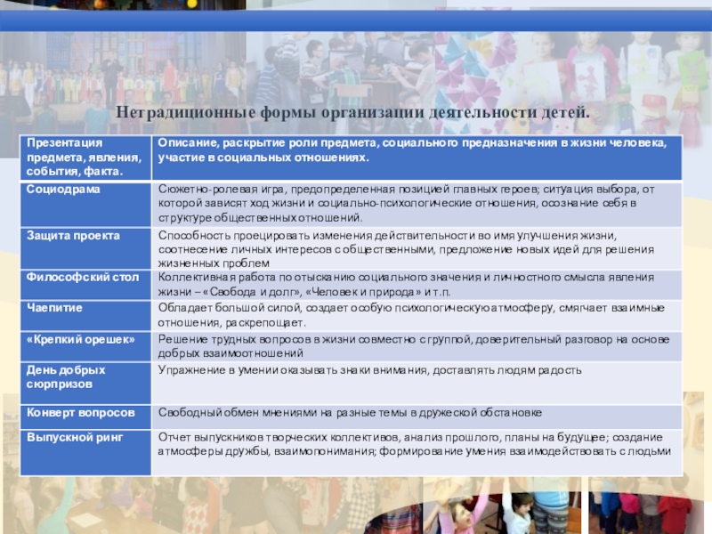 Слайд 28Нетрадиционные формы организации деятельности детей.