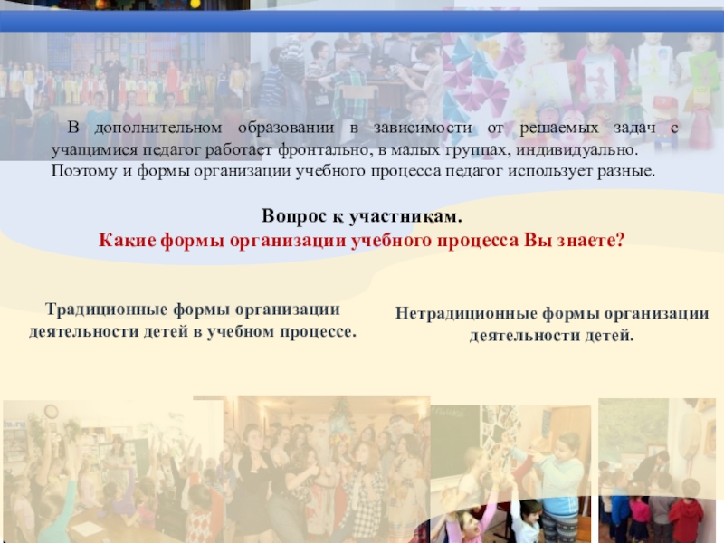 Поэтому и формы организации учебного процесса педагог использует разные.