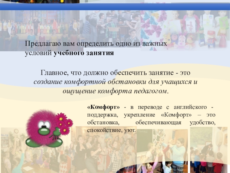 обеспечить занятие - это создание комфортной обстановки для учащихся и ощущение комфорта педагогом.