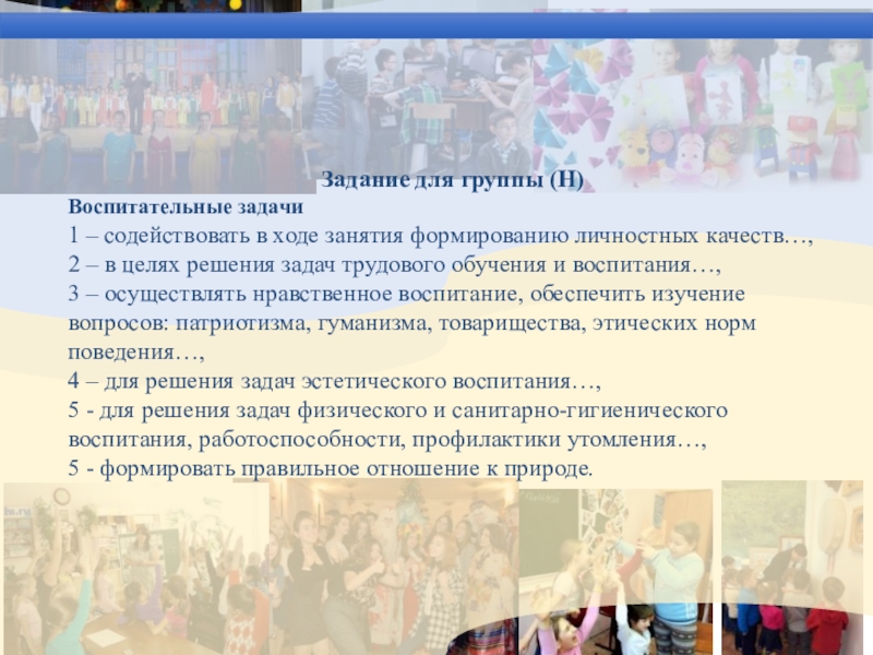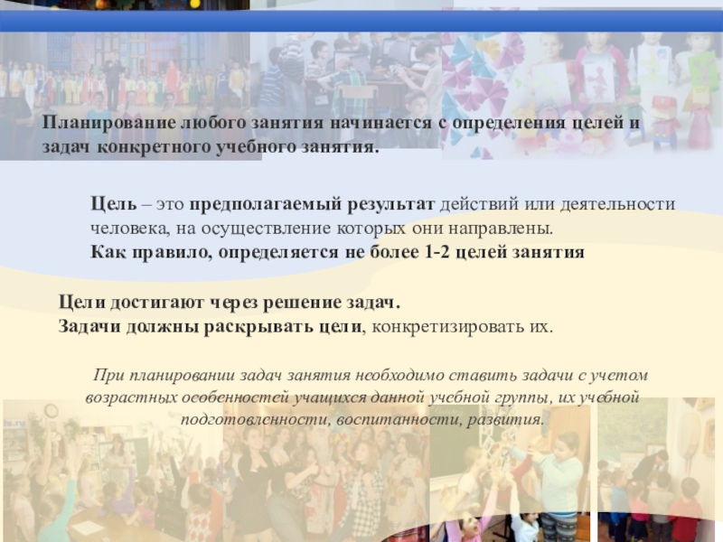 Слайд 20Планирование любого занятия начинается с определения целей и задач конкретного учебного