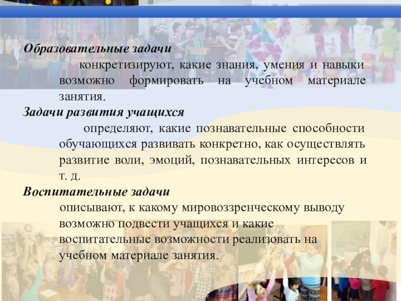 определяют, какие познавательные способности обучающихся развивать конкретно, как осуществлять развитие воли, эмоций, познавательных интересов и т. д.
