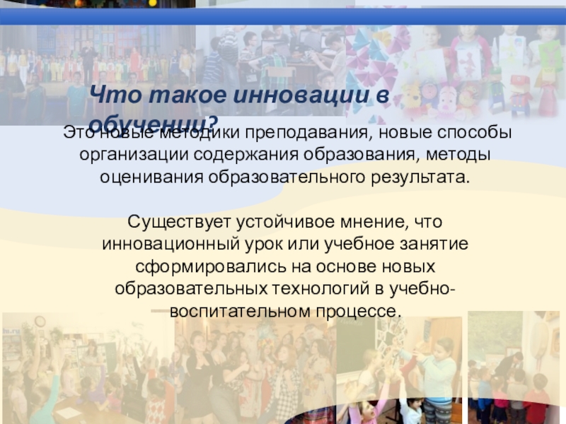 Существует устойчивое мнение, что инновационный урок или учебное занятие сформировались на основе новых образовательных технологий в учебно-воспитательном процессе.