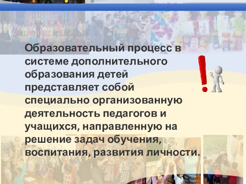 Слайд 12Образовательный процесс в системе дополнительного образования детей представляет собой специально организованную