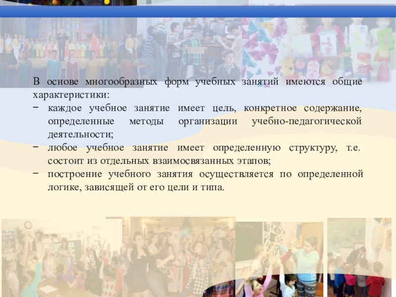 Слайд 30В основе многообразных форм учебных занятий имеются общие характеристики: