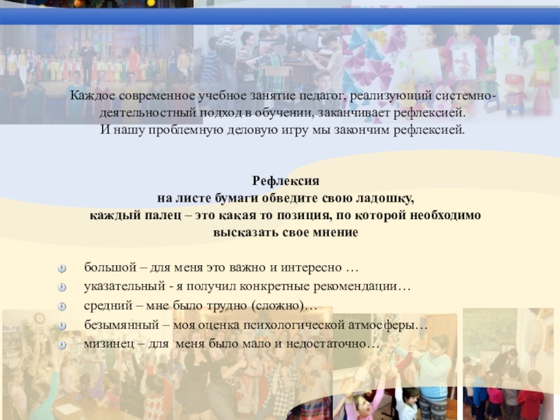 И нашу проблемную деловую игру мы закончим рефлексией.
