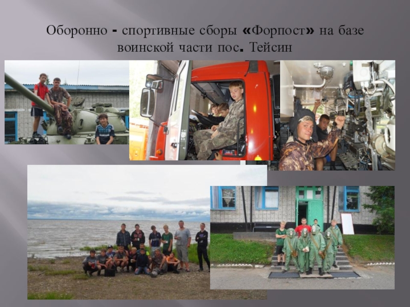 Слайд 15Оборонно - спортивные сборы «Форпост» на базе воинской части пос. Тейсин