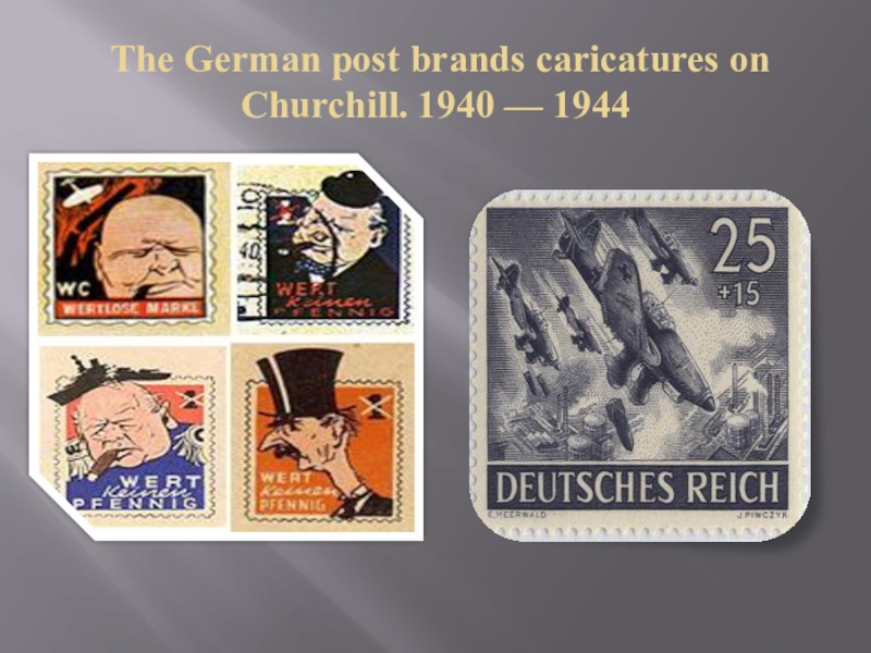 Слайд 15 The German post brands caricatures on Churchill. 1940 — 1944