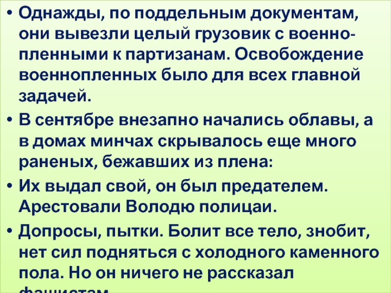 Слайд 26Однажды, по поддельным документам, они вывезли целый грузовик с военно-пленными к