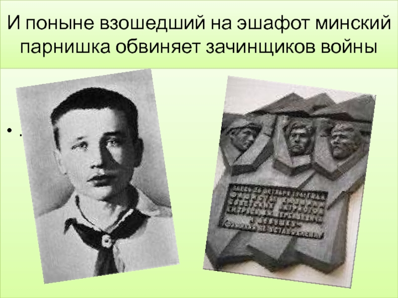 Слайд 29И поныне взошедший на эшафот минский парнишка обвиняет зачинщиков войны