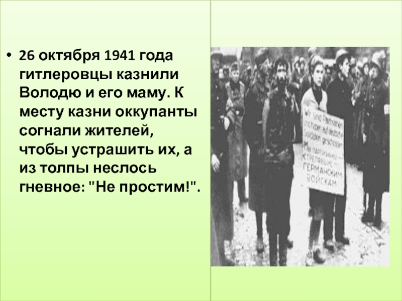 26 октября 1941 года гитлеровцы казнили Володю и его маму. К
