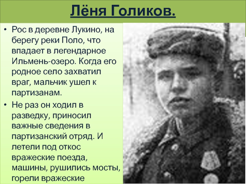 в легендарное Ильмень-озеро. Когда его родное село захватил враг, мальчик ушел к партизанам.