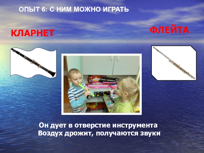 КЛАРНЕТ ФЛЕЙТАОПЫТ 6: С НИМ МОЖНО ИГРАТЬ   Он дует в отверстие инструмента Воздух дрожит, получаются