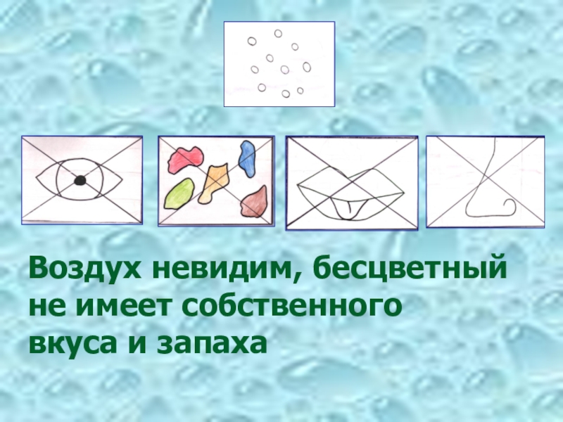 Слайд 6Воздух невидим, бесцветный не имеет собственного вкуса и запаха