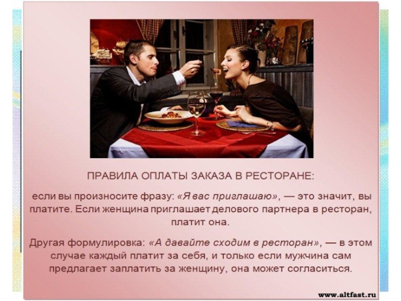В ресторане мужчине следует отодвинуть стул для женщины,
