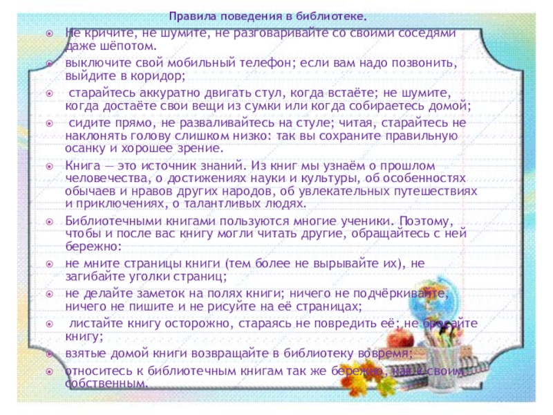 Слайд 13ПРАВИЛА ПОВЕДЕНИЯ В БИБЛИОТЕКЕ.