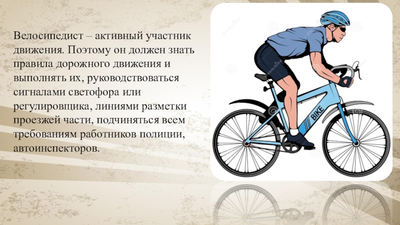 Велосипедист обязан прекрасно знать дорожные знаки, подчиняться сигналам светофора, постового-регулировщика.