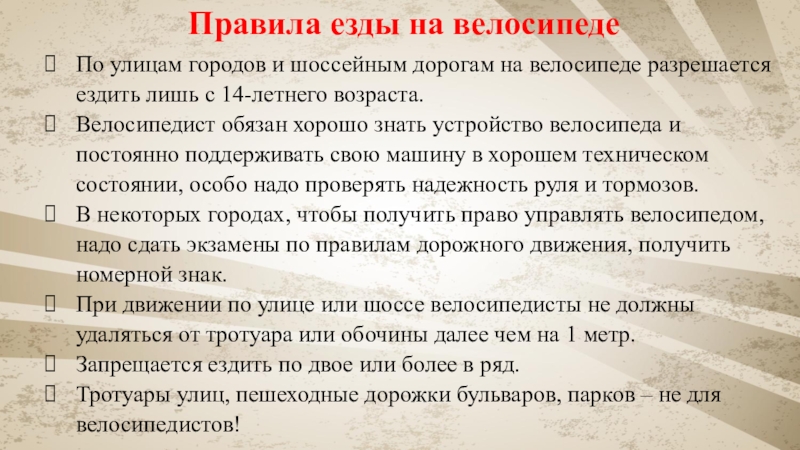 Если на дороге есть специальная «велосипедная дорожка», за ее пределы заезжать нельзя.
