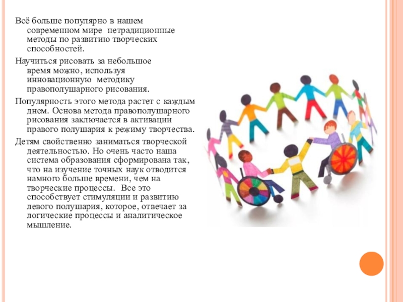 Слайд 4Всё больше популярно в нашем современном мире нетрадиционные методы по развитию творческих способностей.