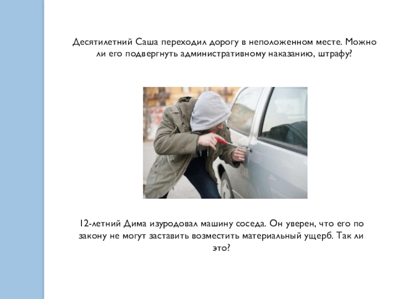 12-летний Дима изуродовал машину соседа. Он уверен, что его по закону не могут заставить возместить материальный ущерб. Так ли это?