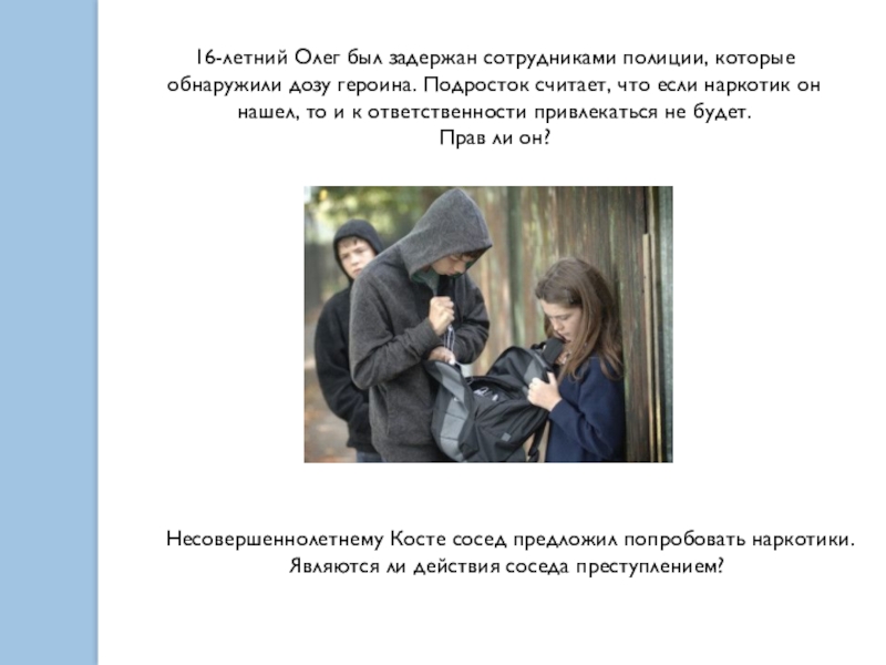 Несовершеннолетнему Косте сосед предложил попробовать наркотики. Являются ли действия соседа преступлением?