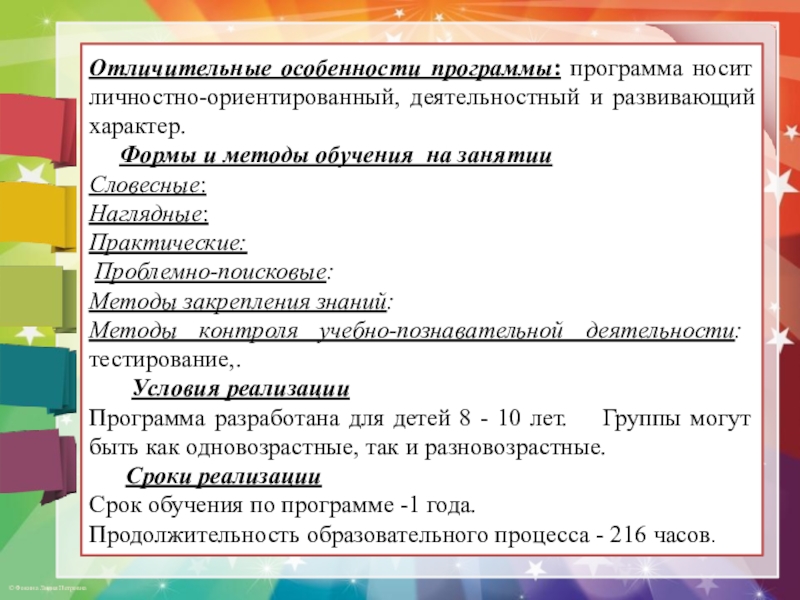 Слайд 4Отличительные особенности программы: программа носит личностно-ориентированный, деятельностный и развивающий характер.