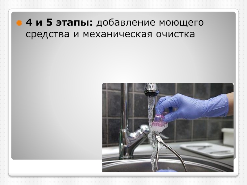 Слайд 74 и 5 этапы: добавление моющего средства и механическая очистка