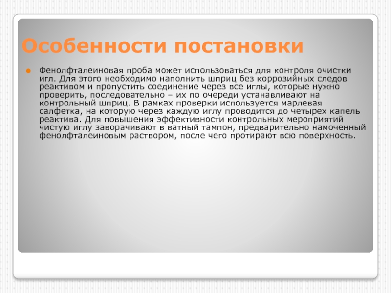 Фенолфталеиновая проба может использоваться для контроля очистки игл.