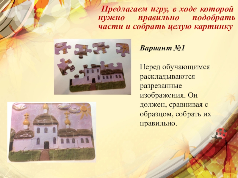 Предлагаем игру, в ходе которой нужно правильно подобрать части и собрать целую картинку